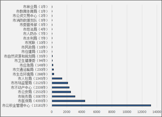 根据“一体化政务服务平台”统计,市政务服务大厅窗口办结共29857件。具体情况如下: