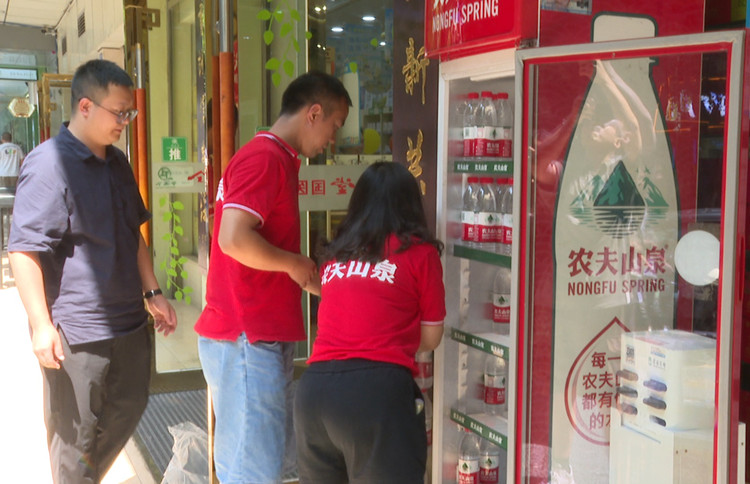 7月11日,位于德胜西路和兴和东街的全泰堂作为首批爱心点位正式投入使用,利用连锁店优势为本次公益活动提供支持。下午3点,德胜西路全泰堂药房门口,农夫山泉和全泰堂的工作人员一起,将矿泉水装入爱心冰柜。农夫山泉遂宁客户经理孙福刚告诉记者:“我们想通过这种方式让户外劳动者有冷饮解暑,也是为城市建设出一份力。”