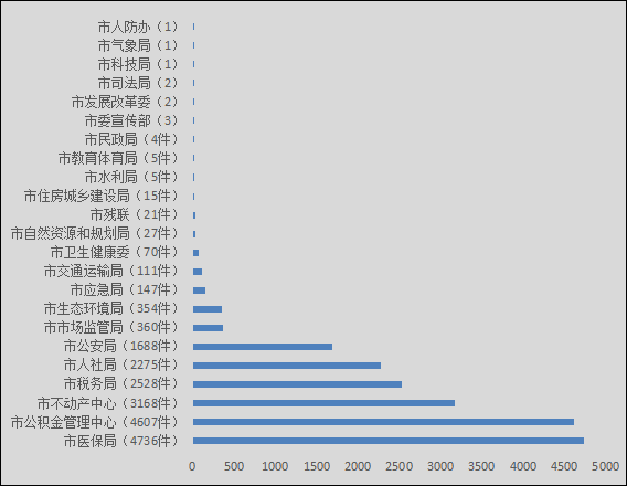 根据“一体化政务服务平台”统计,市政务服务大厅窗口办结共20131件。具体情况如下: