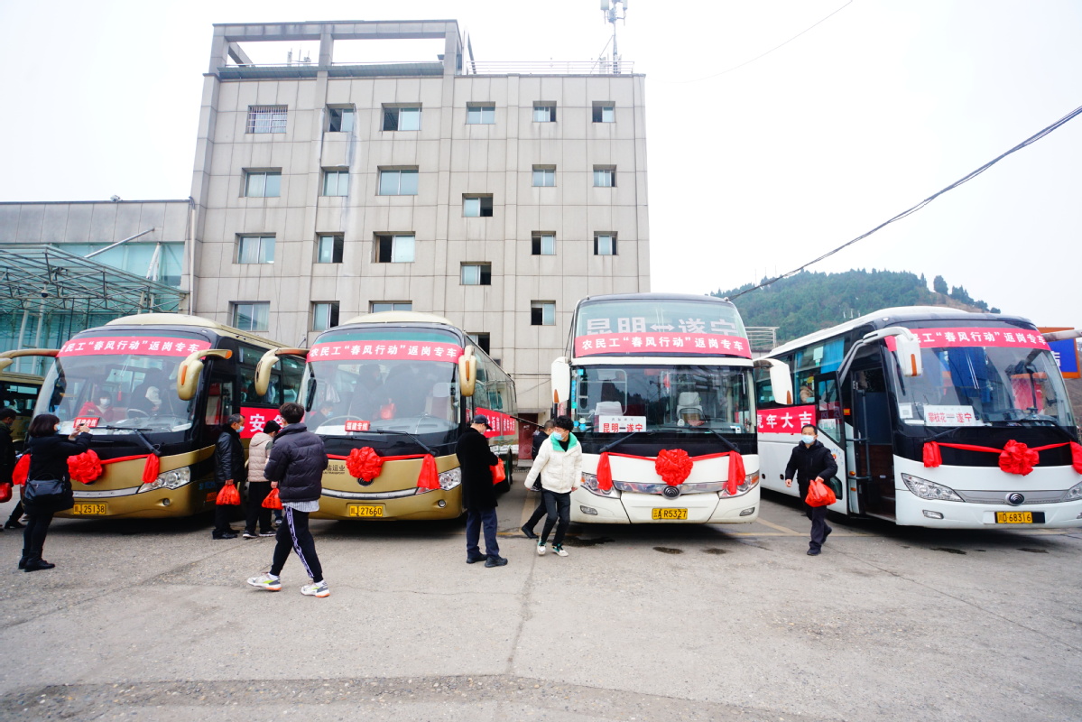 2月6日9:30,几辆遂宁至昆明、遂宁至福建的“春风行动”返岗大巴载着110名务工人员,从遂宁城南客运站缓缓驶出,驶向距离遂宁800公里的昆明、1900公里的厦门等地。这是我市按照全省安排部署启动“春风行动”后,首发的第一批次农民工返岗专车。按照计划,这些务工人员将于6日20:50、7日18:00许抵达昆明市北部汽车站、福建泉州中心客运站、石狮服装城等站点,随后奔赴各自岗位。