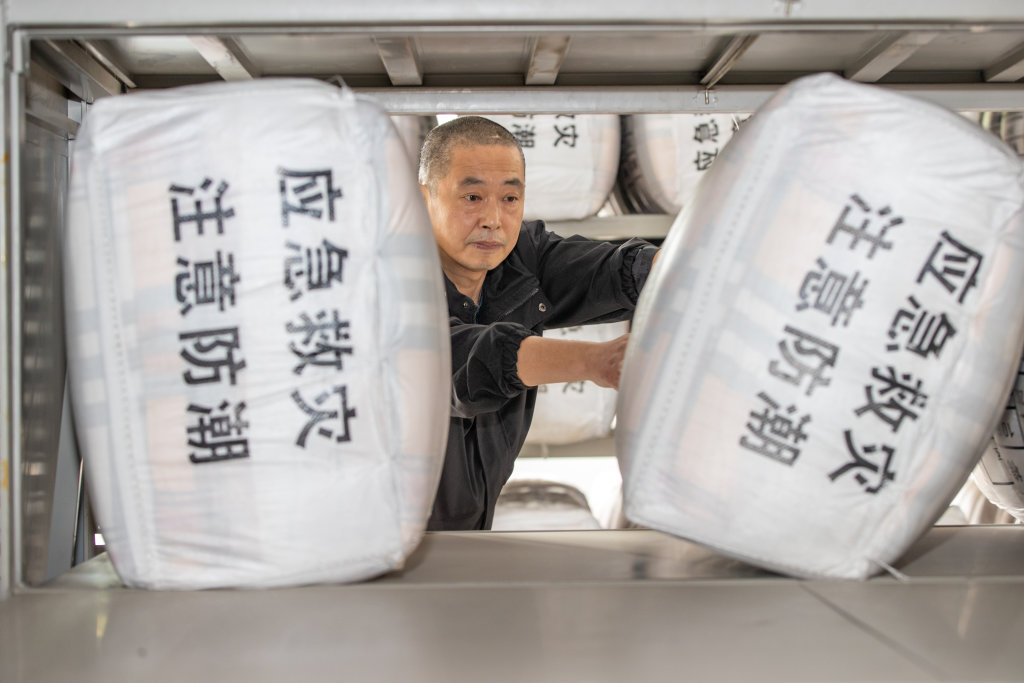 5月6日,在遂宁市省级救灾物资储备库,工作人员正在清点和整理救灾物资,以应对灾害发生时救灾物资的顺利发放。据悉,截至4月30日,现储存在我市的省级前置救灾物资共有3种4200件,市级救灾物资共有35种21025件;全市县级救灾物资共有111314件。
