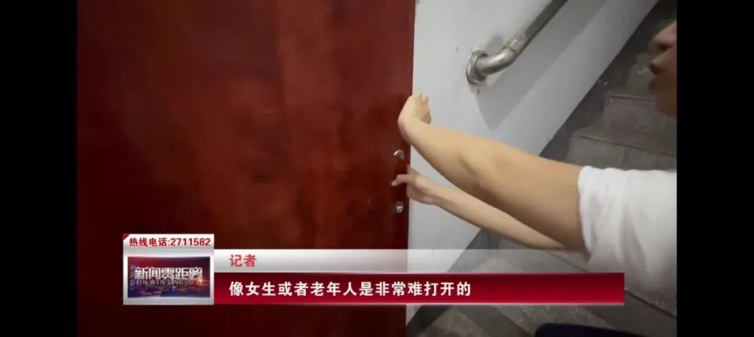 记者随机测试了其中一个防火门,防火门虽然能够正常开合,但是门没有把手,像女生或者老年人是非常难打开的。