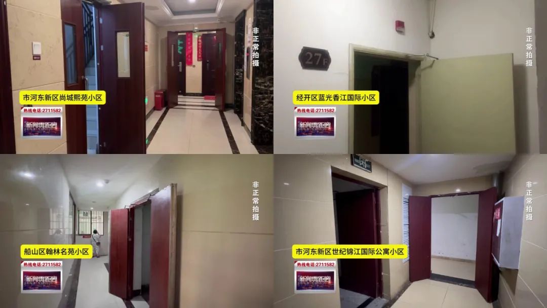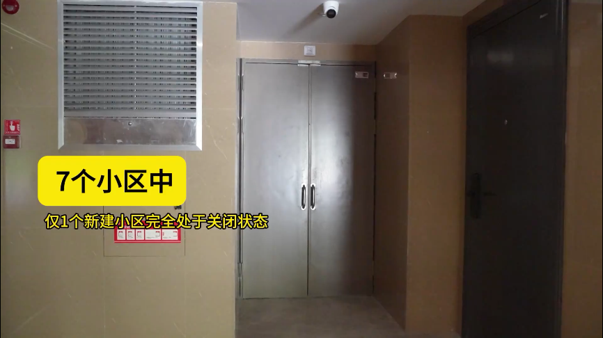 根据记者走访情况来看,市城区7个小区中,仅一个新建小区常闭式防火门完全处于关闭状态,其余6个高层建筑小区的防火门大多处于打开甚至全部打开的状态。