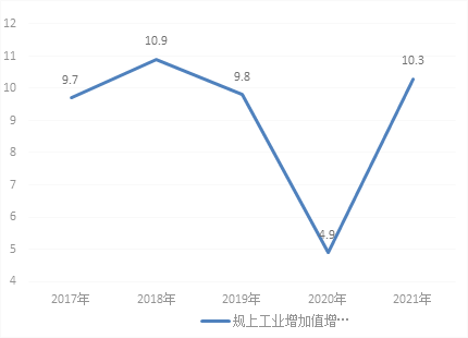 2021年,全市实现工业增加值560.93亿元,增长9.2%,对经济增长的贡献率为39.7%,拉动经济增长3.3个百分点。全市规模以上工业企业达到622家,规模以上工业增加值比上年增长10.3%。