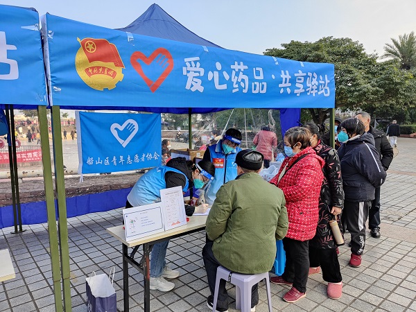 疫情之下,部分市民遇上了缺医少药的难题。对此,船山区青年志愿者协会搭建起“爱心药品·共享驿站”,呼吁市民在满足自身用药需求的前提下,将多余的药品分享给有需求的市民应急,共同驱走疫情,渡过难关。