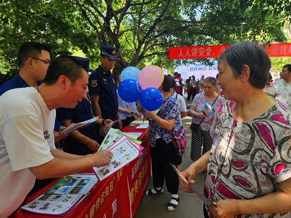 活动现场,各行业、部门工作人员结合展板、宣传资料等向群众讲解安全知识,并通过发放安全宣传资料、法规政策咨询等方式进行安全宣传。