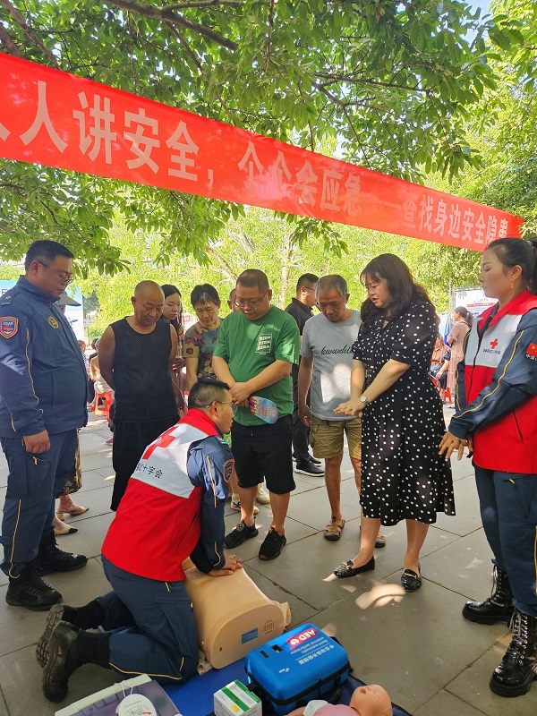 蓬溪县红十字会工作人员讲授急救知识,与现场群众互动