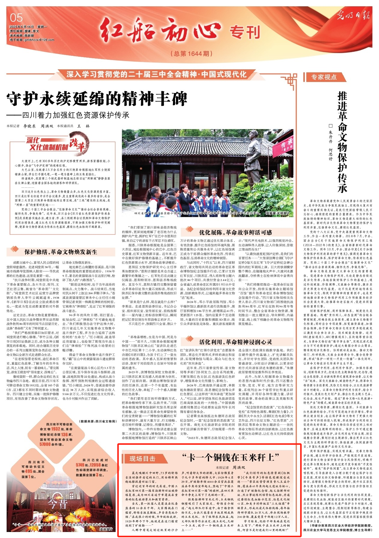 6月16日,《光明日报》“红船初心”专刊