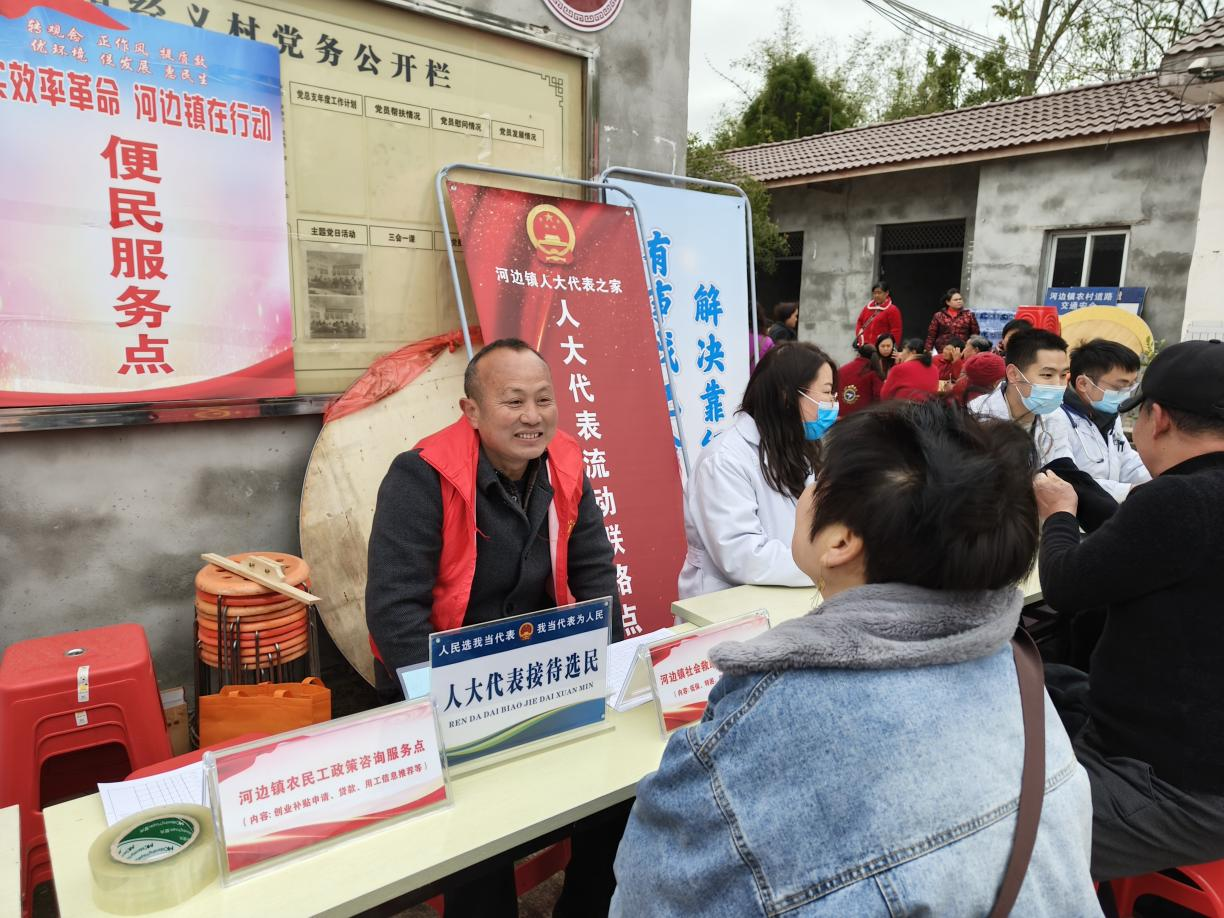 遂宁市大英县河边镇人大自2024年起创新推出“赶集”接访机制,将每月中旬逢双的“赶集日”定为“代表服务日”。人大代表们身着“红马甲”,在集市旁支起“歇脚点”,通过“摆闲谈”方式,现场受理广大群众各种民生问题。据统计,该机制运行近一年来,112名市、县、镇三级人大代表轮流“摆摊”,共接访“赶集”群众1200余人次,提供政策咨询帮助600余人次,发放宣传资料2000余份,收集意见建议700余条,推动解决环境秩序、噪音扰民、村社道路及公共设施维修等问题180余个,还协助群众进行线上社保年审、手机银行认证、预存话费等,切实解决群众的急难愁盼问题。