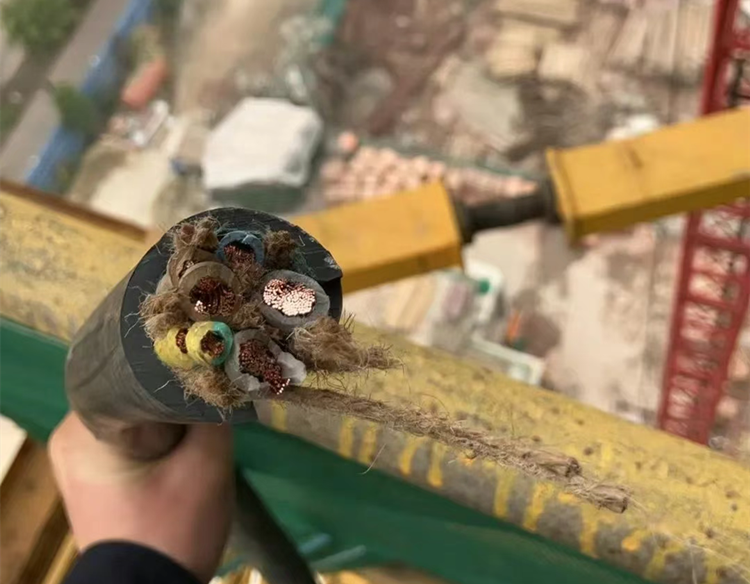 近日,蓬溪县公安局普安派出所接到辖区一在建楼盘施工人员报警称,工地上一座塔吊的供电线缆被人全部切割盗走,直接经济损失近万元,还导致工地无法正常施工。办案民警迅速赶往现场展开调查,发现该塔吊有20多层楼高,由一根直径大约10公分粗的电缆从下方一直通到顶部供电,从负一层到18层这一整段的线缆被人切断了,总长度大约65米。