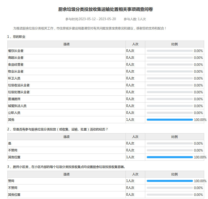 厨余垃圾分类投放收集运输处置相关事项调查问卷