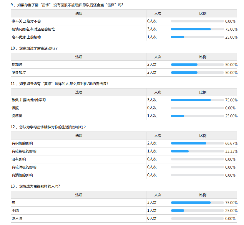 - 11、如果您身边有“雷锋”这样的人,那么您对他/她的看法是?