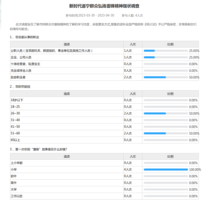 此次调查旨在了解市民群众对雷锋精神的了解和学习态度,采取匿名方式,搜集的资料全部严格按照《统计法》予以严格保密,非常感谢你们的填写与配合。