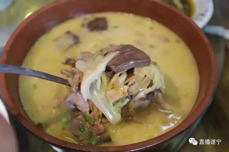 一道家喻户晓的农家菜,每年杀年猪那叫一个热闹,猪杂骨、猪角油加姜、蒜、农家盐菜熬制底汤,再将猪瘦肉,猪血,猪肝,猪肺等其他内脏切片,加入黄花、木耳一起下锅熬制,待肉熟汤滚后再加入农家蔬菜,蒜苗起锅,一大碗热气腾腾的遂州刨汤让你越吃越美味,越喝越开心。
