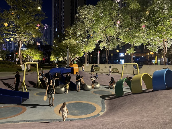 市河东新区慈音街道棉场社区居民李富良说:“这里环境优美,周围设施也很齐全,就餐、遛娃都很便利,希望更多的商家来这里发展,让这里人气更旺,更有烟火气。”