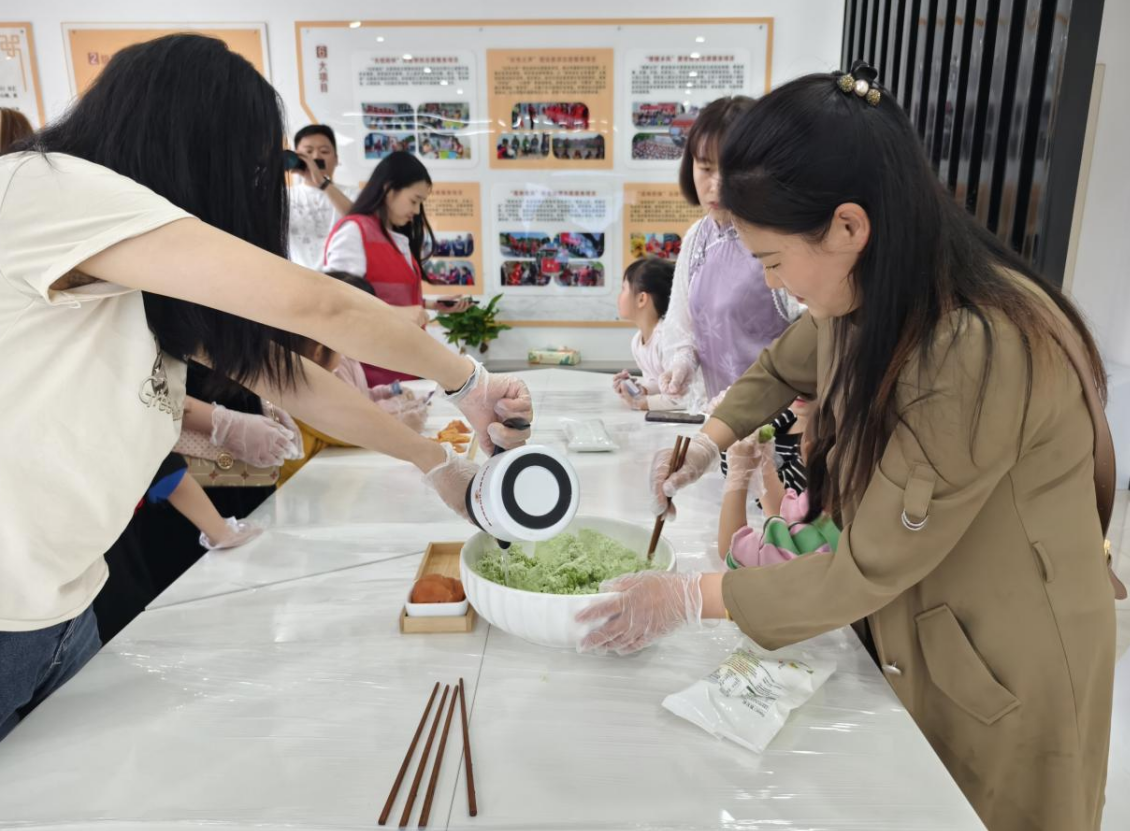 活动现场 在志愿者的带领下 大家互相协作 共同制作了豆沙芝麻、肉松蛋黄等 口味丰富的青团
