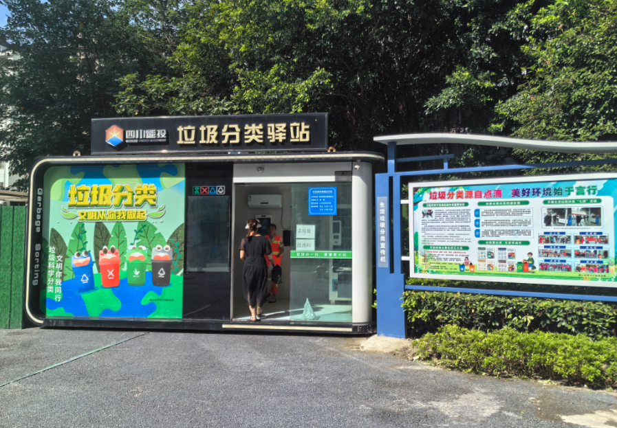 “瓶子、烂铁、纸板、废书、金属等是可回收垃圾,要放进蓝色桶。果皮、菜皮、剩菜剩饭属于厨余垃圾,要放绿色桶子。”干净整洁的垃圾分类收集箱、自动感应的垃圾投放口、清晰明了的垃圾分类标识……7月24日,走进船山区南津路街道天宫社区凯悦江岸小区的智能垃圾分类驿站,崭新并有序摆放的垃圾分类设施映入眼帘,垃圾分类宣传栏格外醒目,生活垃圾分拣员正耐心引导居民进行垃圾分类投放。