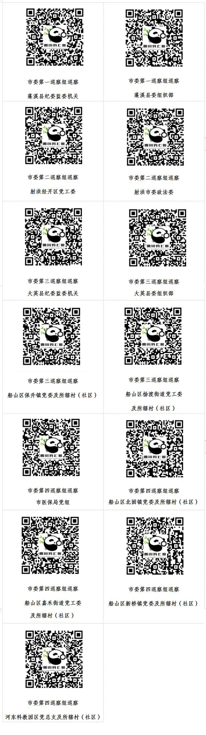 根据八届市委巡察全覆盖计划,按照省委巡视工作领导小组《关于进一步推动新时代巡察工作高质量发展的意见》,市委组建4个巡察组集中对5个部门(单位)开展常规巡察,对23个部门(单位)开展提级巡察。截至3月21日,4个市委巡察组已完成对市医疗保障局党组、射洪经开区党工委、射洪市委政法委、蓬溪县纪委监委机关、蓬溪县委组织部、大英县纪委监委机关、大英县委组织部、船山区保升镇党委及所辖村(社区)、船山区杨渡街道党工委及所辖村(社区)、船山区北固镇党委及所辖村(社区)、船山区嘉禾街道党工委及所辖村(社区)、船山区新桥镇党委及所辖村(社区)、河东科教园区党总支及所辖村(社区)等13个部门(单位)的首批进驻。
