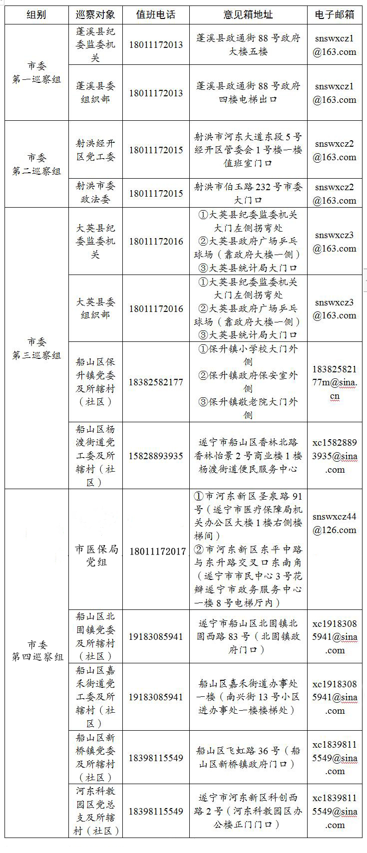 八届市委第五轮首批巡察各巡察组联系方式