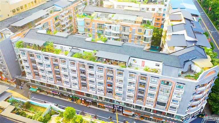 五彩缤纷路上,完成第五立面改造的商业建筑展现出全新面貌。