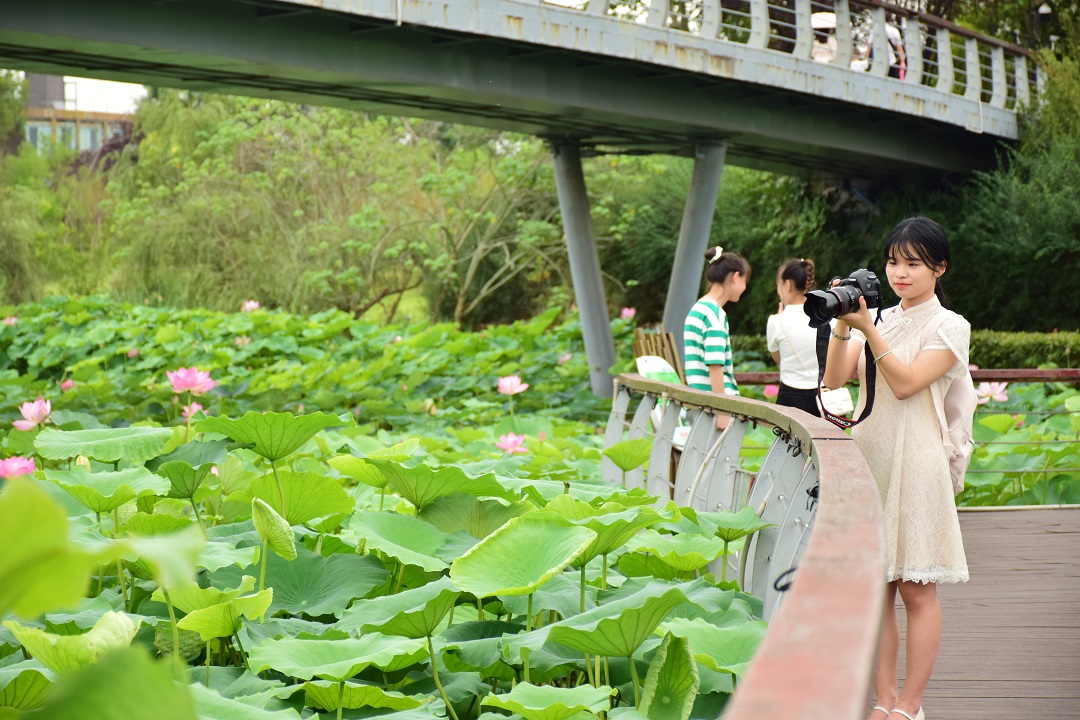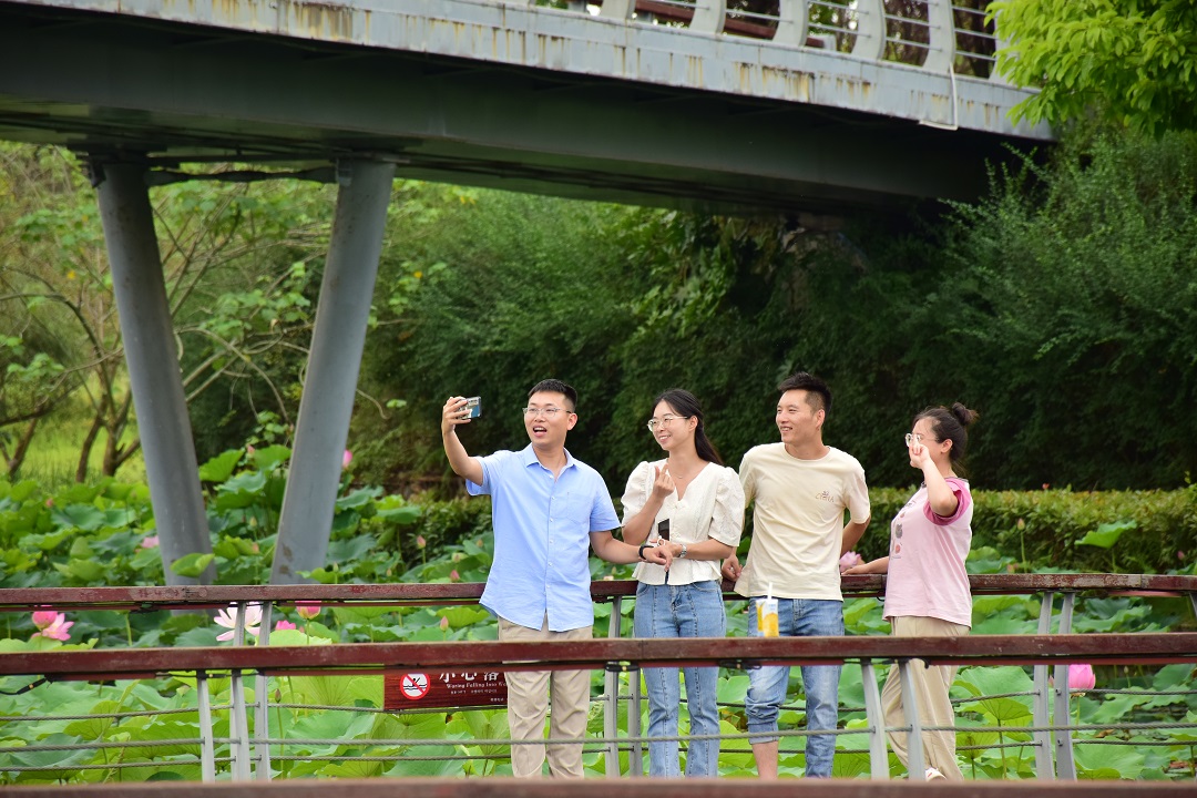 与此同时,就读于四川职业技术学院小学英语专业的况燕燕选择驻足遂宁,来一场反向旅游。“前几天在网上刷到大家拍的荷花,这次节假日就想出来看一看,和老家宜宾不同的是这里江景面积也很大,吹吹江风看看荷花,心情会变好。”拿着相机一路留恋,作为摄影爱好者的她想将相机里风景分享出去,“让更多的人看见荷花,也让更多的人爱上遂宁。”